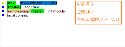 创建并切换到dev分支,在上面新增成员D_TWO.DEV