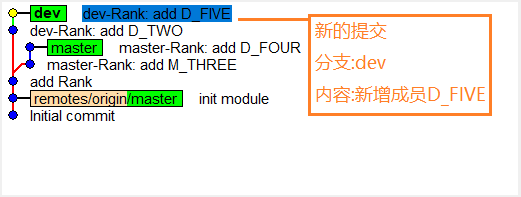 切换回dev分支,在上面新增成员D_FIVE.DEV