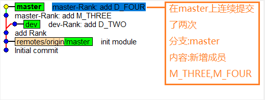继续在master上新增一个提交,提交内容是在Rank里新增一个成员M_FOUR.MASTER