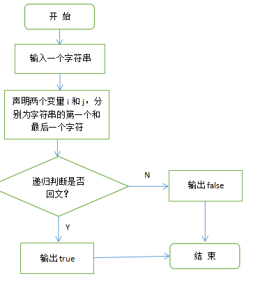 输入一个字符串,首先定声明两个变量i和j,分别为字符串的第一个和最后一个字符,然后从头开始依次比较首尾字符,如果相同,再比较第二个和倒数第二个,依次比较直到最后完全相同,输出。