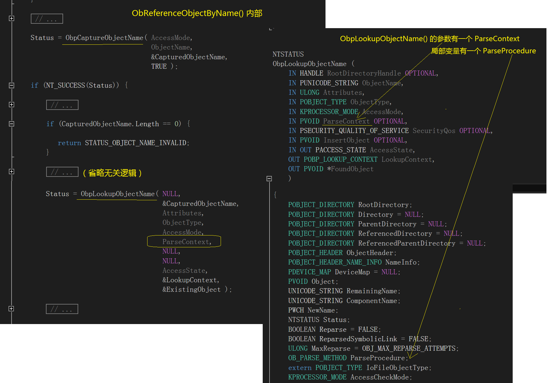 现在你知道为啥 ObReferenceObjectByName() 引用目标设备总是让人如此蛋疼,关键就在需要分配并初始化那个 ParseContext。。。