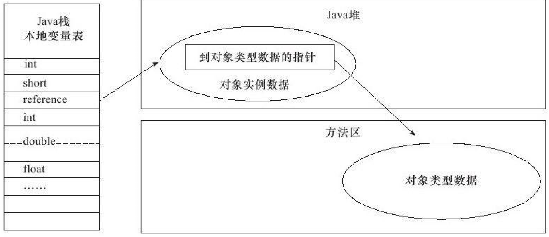 Java堆中将会划分出一块内存来作为句柄池,reference中存储的就是对象的句柄地址,句柄中包含了对象实例数据与类型数据各自的具体地址信息;