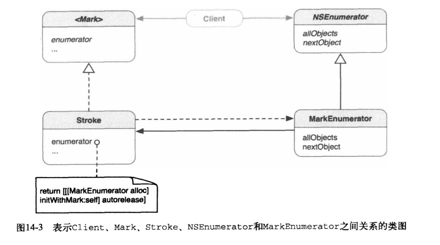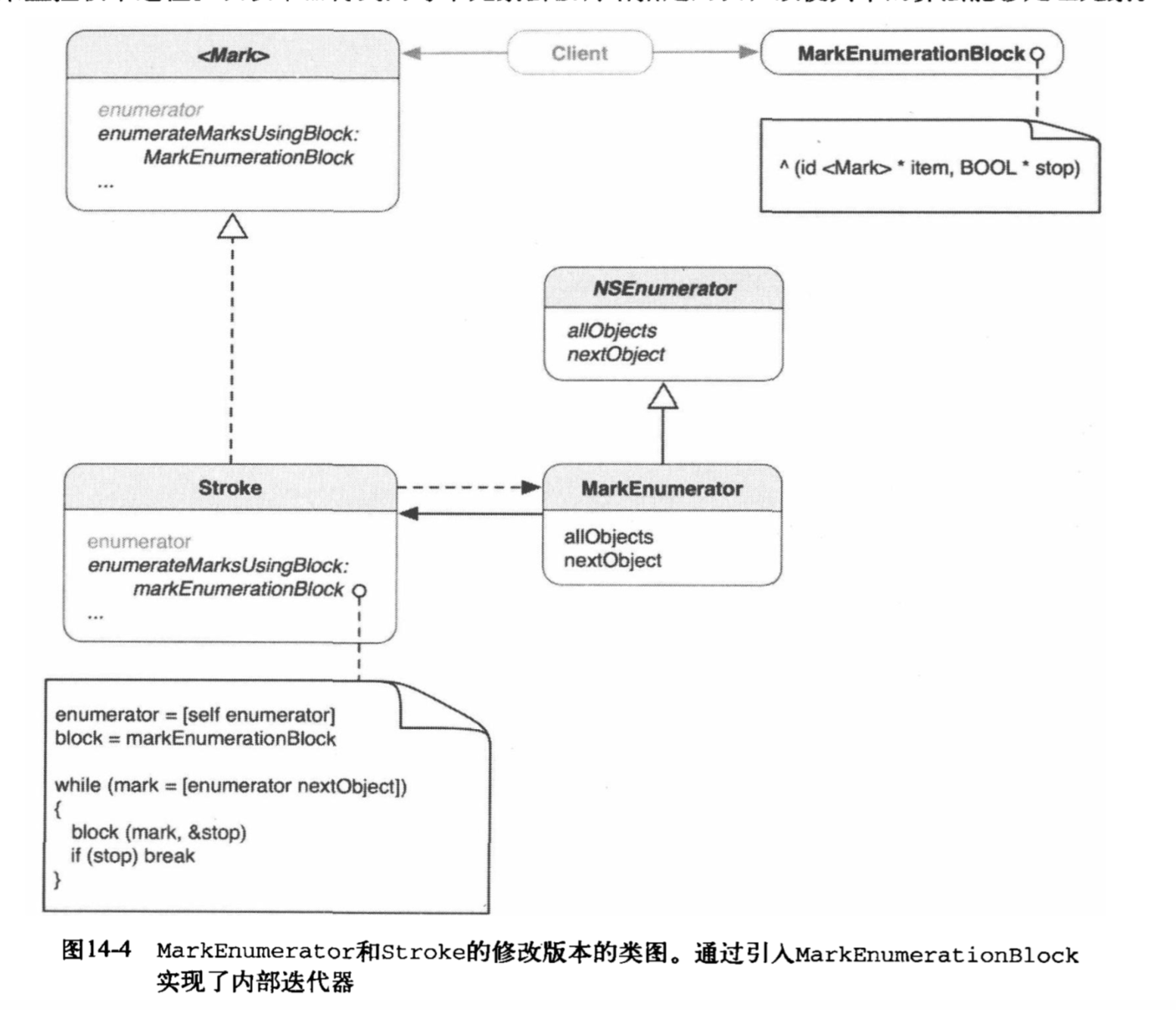 @protocol Mark <NSObject,NSCopying> @property (nonatomic, strong) UIColor *color; @property (nonatomic, assign) CGSize size; @property (nonatomic, assign) CGPoint location; - (void)addMark:(id<Mark>)mark; - (void)removeMark:(id<Mark>)mark; - (void)removeAllMarks; - (id<Mark>)childAtIndex:(int)index; - (id<Mark>)lastChild; - (NSUInteger)count; - (instancetype)copy; //迭代器 - (NSEnumerator *)enumerator; //内部迭代器 - (void)enumerateMarksUsingBlock:(void (^) (id <Mark> mark, BOOL *stop))block; @end;