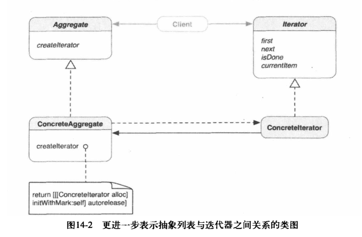 1.抽象聚合体Aggregate中定义了创建迭代器的接口,实例聚合类ConcreteAggregate实现创建迭代器的接口,返回自己类型的迭代器。