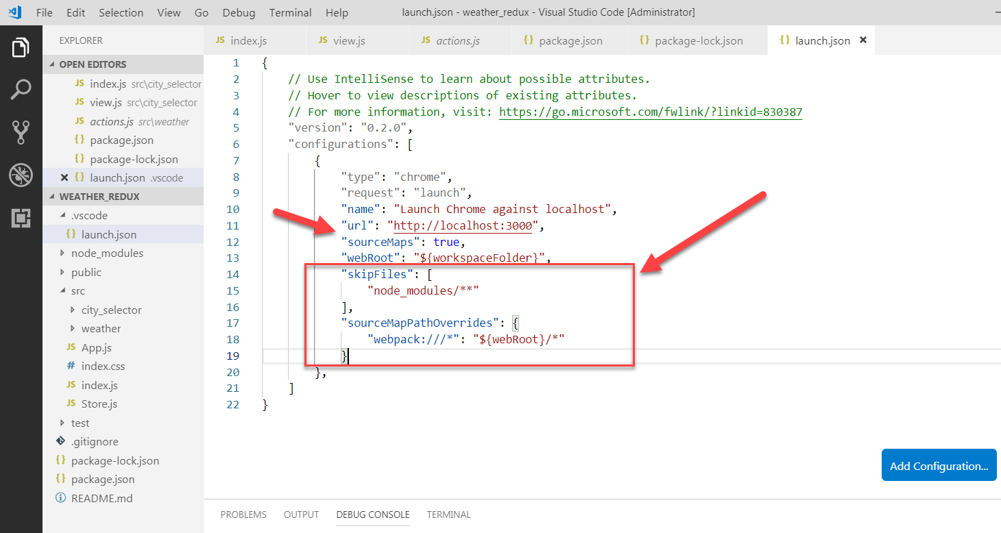 本文介绍如何在VSCode的launch.json文件中配置sourceMaps、skipFiles和sourceMapPathOverrides选项,以实现源代码映射,跳过node_modules目录,并重写webpack路径。