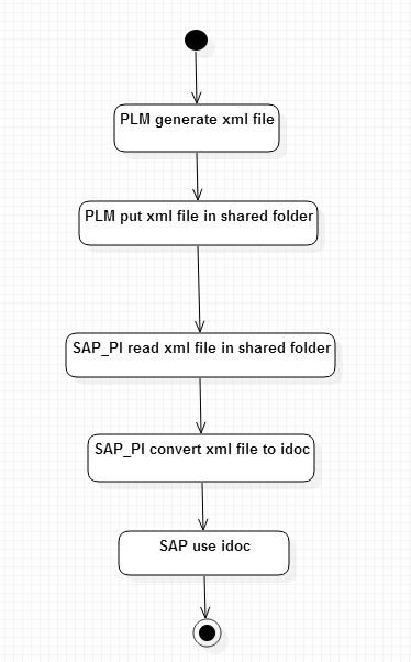 先来说说PLM是怎样把数据发送到SAP的,我用UML活动图来描述这个流程(第一次画活动图,心里还有点小紧张呢:))
