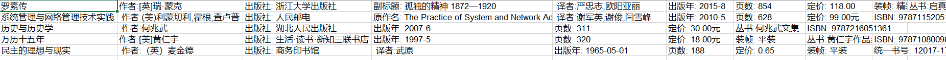 上图是程序运行后生成的excel文件,其中包括标题,作者,出版社等信息。