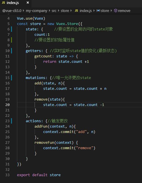import store from './store'//引入store new Vue({ el: '#app', router, store,//使用store template: '<App/>', components: { App } })