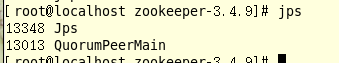 按照上面的配置后,正常情况下可以启动了 ,进入/usr/local/zookeeper-3.4.9,输入bin/zkServer.sh start ,输入jps 如图表示启动成功