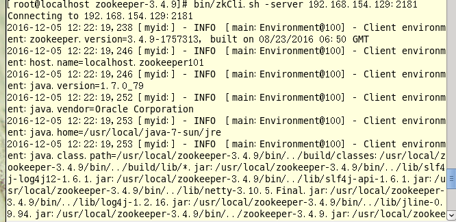 用bin/zkCli.sh -server 192.168.154.129:2181 测试 输入如下: