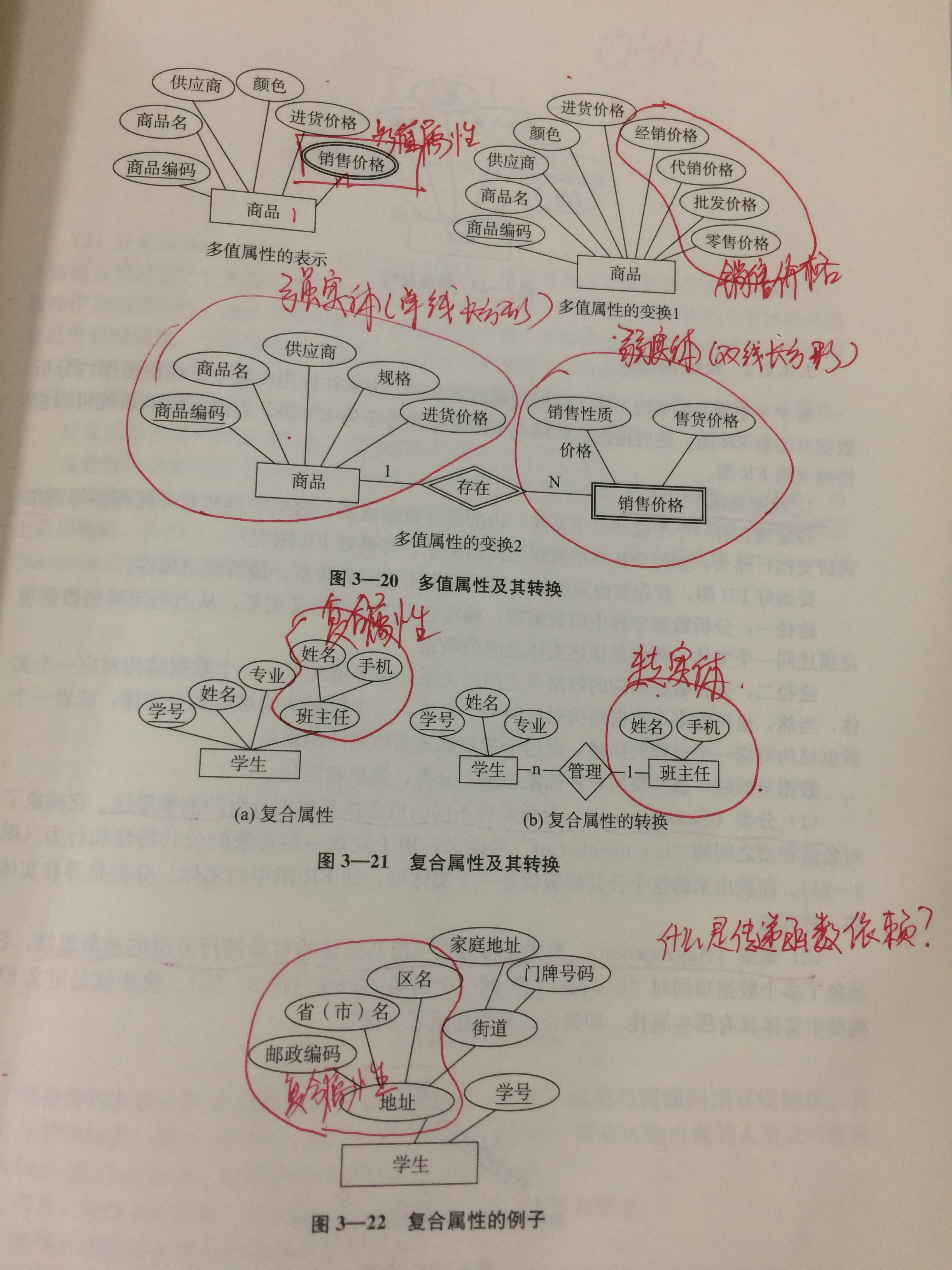 ①实体能进一步用多个属性来描述,属性却不能,属性是不可再细分/分割的原子项。