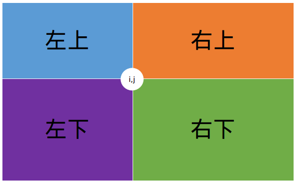考虑对于点$(i,j)$,要从点$(i',j')$转移得来,那么将分为下面四种情况: