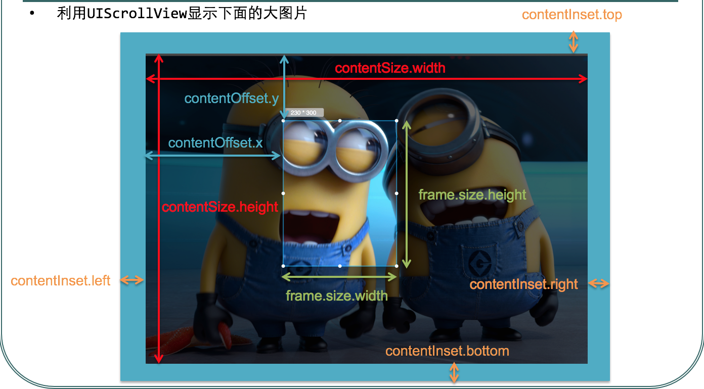 这个属性用来表示UIScrollView内容的尺寸,滚动范围(能滚多远)