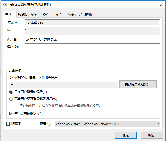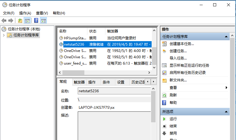 3、在开始中,打开任务计划程序,可以看到创建的任务netstat5236,