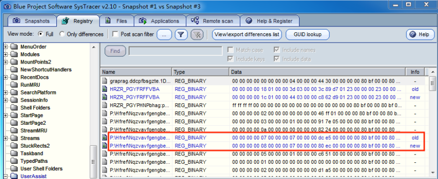 (4)使用systracer工具,比对前后区别,动态分析注册表修改情况和文件修改情况等,分析原因。