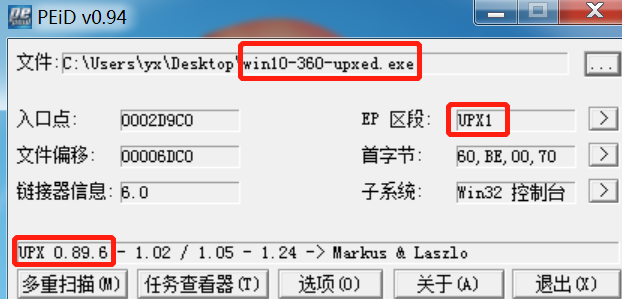 PEiD是一款著名的查壳工具,其功能强大,几乎可以侦测出所有的壳;