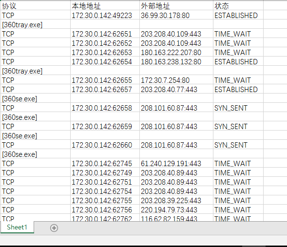 1、使用如计划任务,每隔一分钟记录自己的电脑有哪些程序在联网,连接的外部IP是哪里。运行一段时间并分析该文件,综述一下分析结果。目标就是找出所有连网的程序,连了哪里,大约干了什么(不抓包的情况下只能猜),你觉得它这么干合适不。如果想进一步分析的,可以有针对性的抓包。