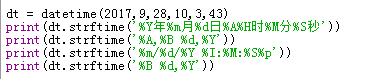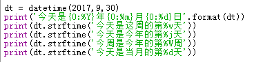 September 30, 2017用datetime类型的变量输出以下字符串: