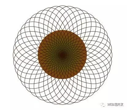 先在向日葵中心圆上部话一般圆形div,只要border。设置tranform-origin到向日葵的中心位置。复制这个圆并旋转。得到下图: