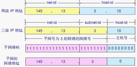 - 当没有划分子网时,IP地址是两级结构.划分子网后IP地址就变成了三级结构