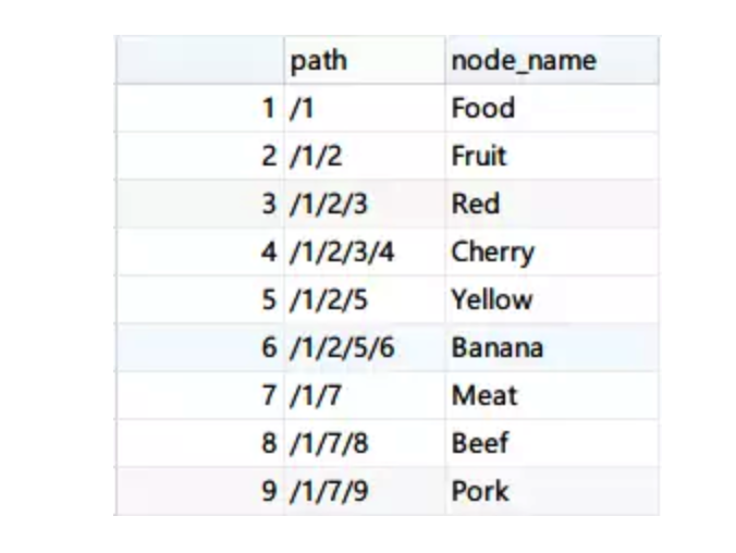 PS:如果层级数量是确定的,可以再将所有的列都展开,如下图,比较试用于类似行政区划、生物分类法(界、门、纲、目、科、属、种)这些层级确定的内容。