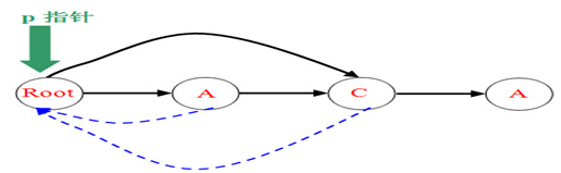 (3)插入A:节点A找last,也就是C,然后找到p指针所在的root,判断是情况1还是2,显然是1。直接进行操作。