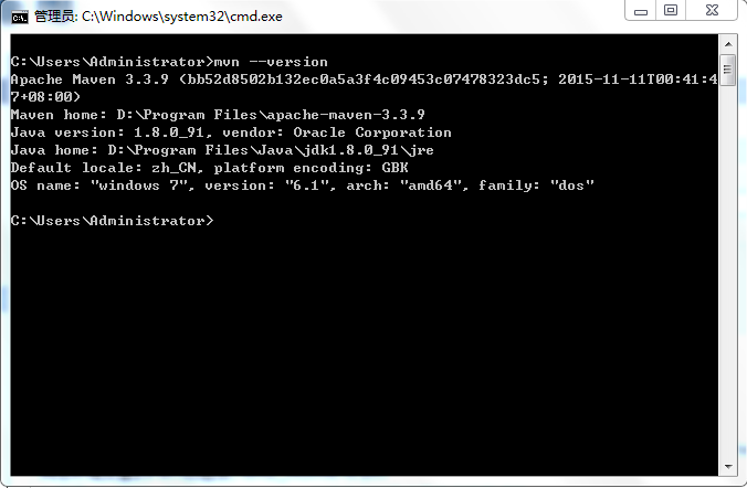 5.打开cmd窗口:输入 mvn --version,出现类似如下内容表示安装成功。
