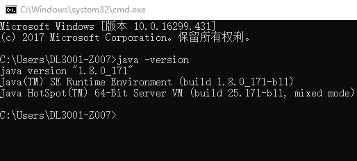打开DOS界面(win+R键,输入cmd),接着输入java -version出现以下界面