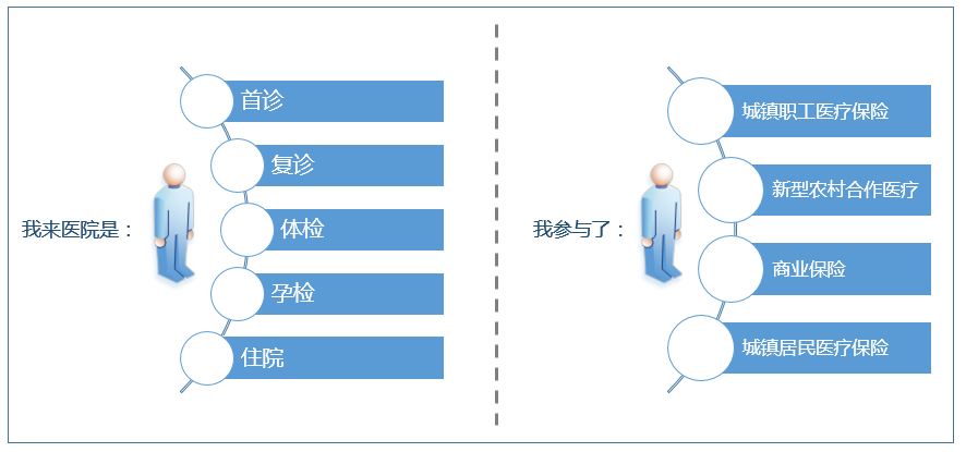 针对患者就医时常见的情景进行引导。例如:首次就诊,复诊等。在"情景式引导"过程中,可以结合"地图式引导"和"流程式引导"为患者提供更加直观、准确的信息。