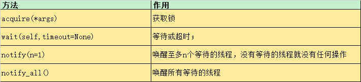 使用Condition,必须先acquire,用完了要release,因为内部使用了锁,默认使用RLock,最好的方式是使用with进行上下文管理(自动加锁和解锁);