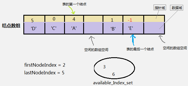 如此下去......当访问到的结点的next为-1时,表示它是最后一个结点。最后一个结点的索引用字段lastNodeIndex保存。