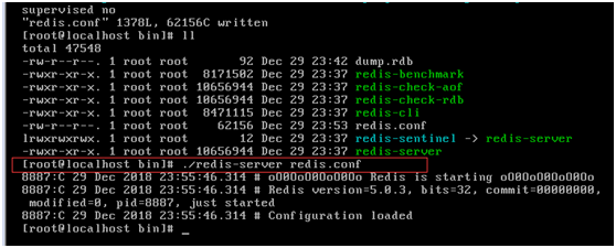 [root@localhost bin]# cp /root/redis-5.0.3/redis.conf /usr/local/redis/bin