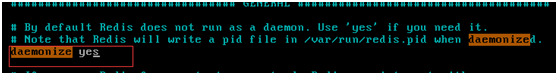 然后修改redis.conf文件daemonize参数为yes,即配置redis作为守护进程运行。默认情况下 redis 不是作为守护进程运行的。