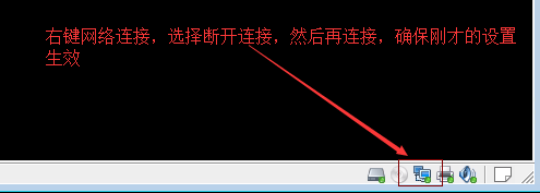 三、在虚拟机右下角,点击网络适配器按钮,右键选择断开连接,然后再重新连接,确保刚才的设置生效。然后开启虚拟机,输入ifcfg查看当前分配的IP。