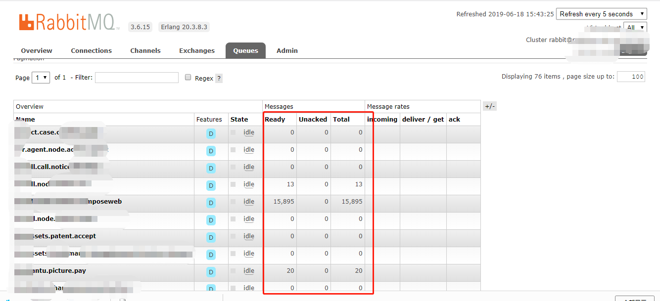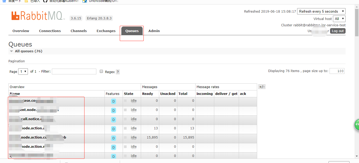 刷新页面,查看用户、队列、vhost 等信息是否存在