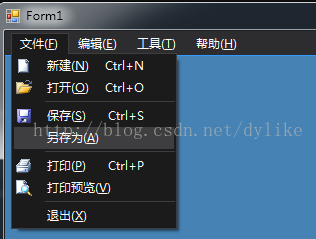 在本节,将演示DSAPI.菜单渲染功能.本功能支持对WINFORM菜单项的任意细节进行处理,使用配色方案进行渲染,默认配色方案为Visual Studio2012的黑色主题风格.