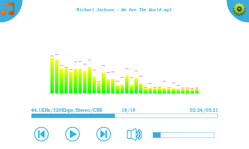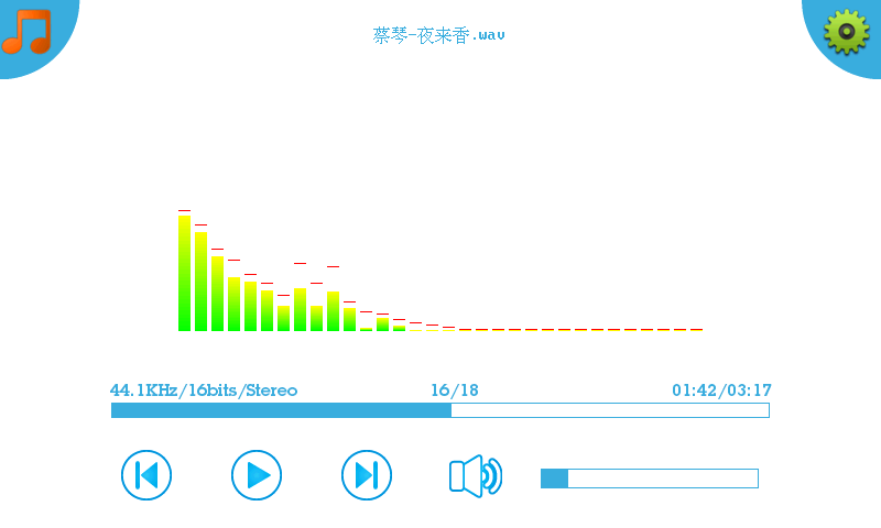 (1)支持上一曲,下一曲,快进和快退,常用的采样率和码率都支持,单声道和立体声也都支持。
