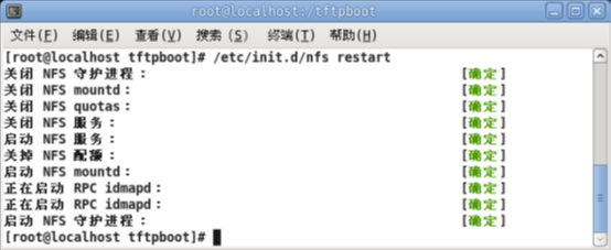 3.重启 TFTP 服务;使用命令"/etc/init.d/xinetd restart"重启 TFTP 服务。如下图3-149 所示;