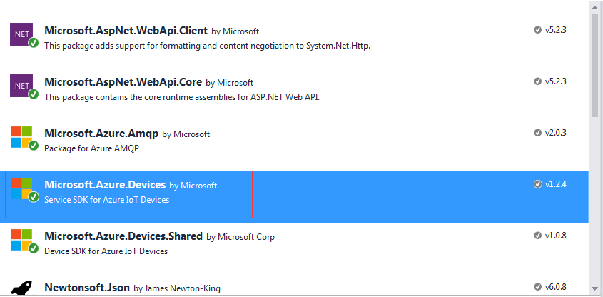 本文测试用的:<package id="Microsoft.Azure.Devices" version="1.2.4" targetFramework="net451" />