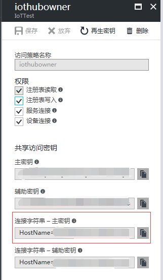 将连接字符串-主秘钥,复制保存下来备用。