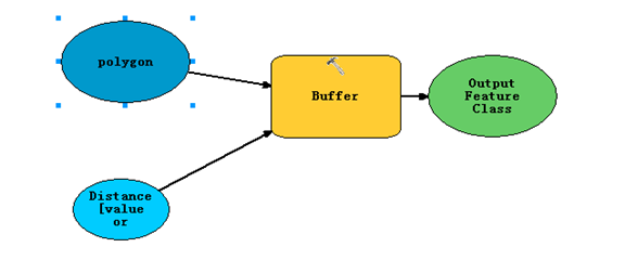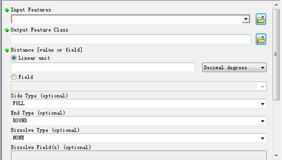 - 先说第一种,右键buffer,选择Make Variable-From Parameter。我们看到后面的参数,和上图的参数是一样的。不过还是缺少了一个Output Feature Class。看一下Buffer右侧是什么?这是拖进来,自动就把这个参数添加进来了,我这里点击选择Distance[value or field]。