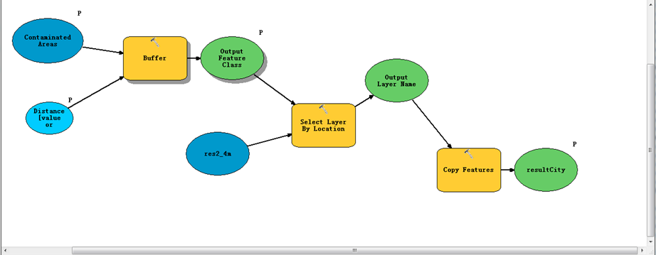 1:得到受污染的区域 2:进行缓冲 3:将在缓冲区的城市选出来。