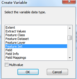 在这里建模空白区域,右键选择Create Variable(创建变量),选择我们需要使用的参数类型,我们这里选择Feature Set。