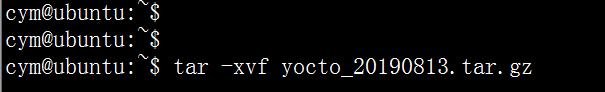 使用 tar -xvf yocto_20190813.tar.gz 命令解压Yocto源码,如下图: