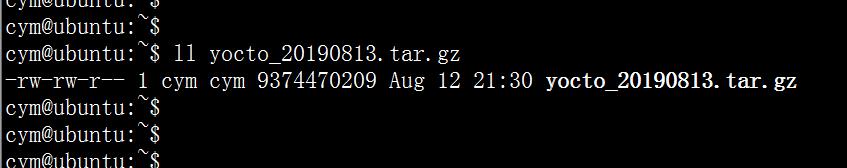 首先Yocto系统编译,不能使用root用户编译,笔者的ubuntu登录用户名为cym(可以根据自己的ubuntu上的用户,选择对应的用户登录),第二步上传源码压缩包到ubuntu的账户需要跟登录的账户一致。保证硬盘剩余空间至少80G。