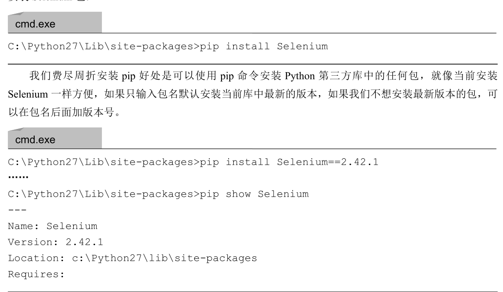 3.安装 Selenium,我们在CMD命令窗口切换到python目录下用下载好的selenium包用命令pip install selenium安装或直接通过pip在线安装如下图: