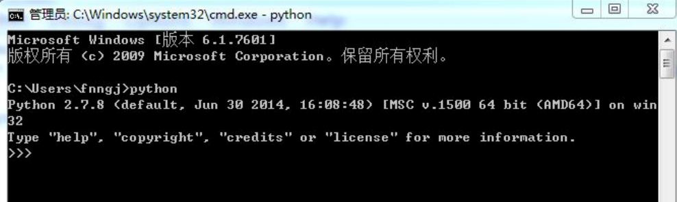 或者通过在 Windows 命令提示符下输入“Python”命令,也可以进入 Python Shell 模式。如下: