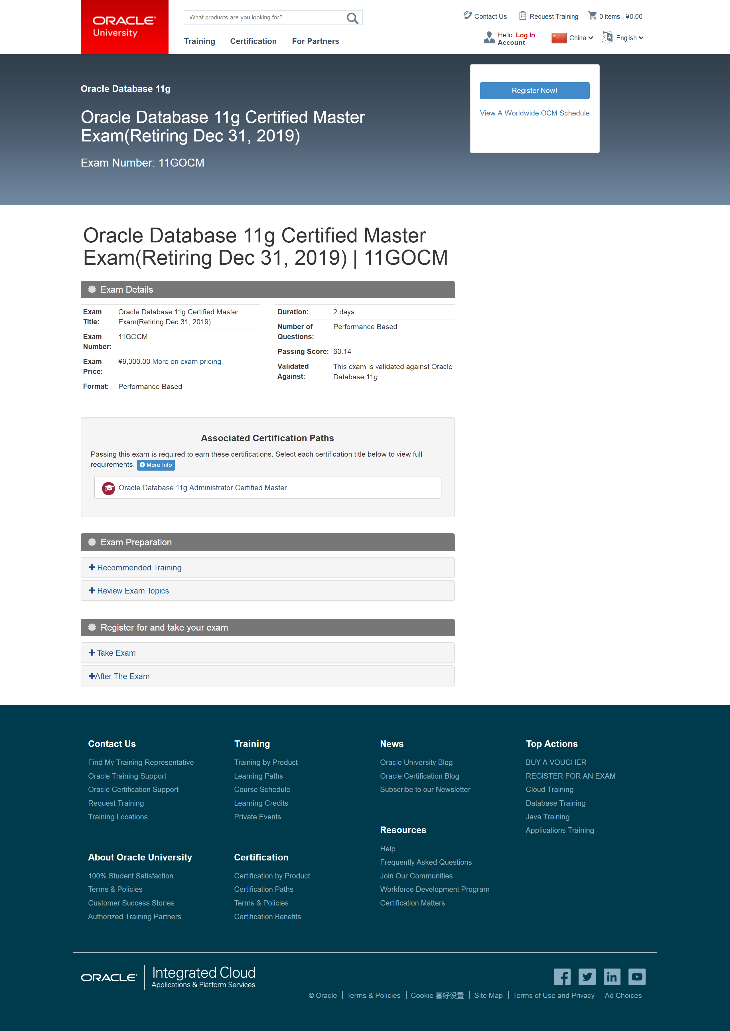 OCM 11g 考试将于 2019年12月31日停考。点此查看官网通知
