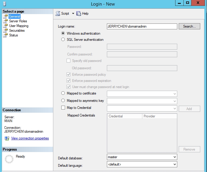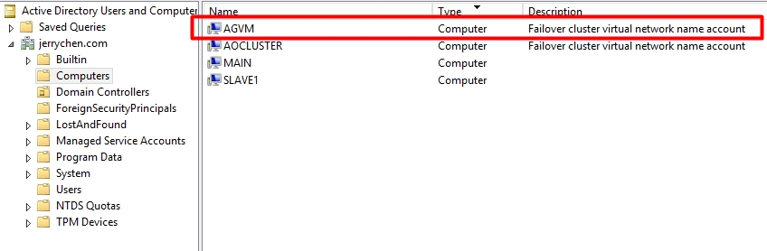 | Server Name | dc.jerrychen.com | main.jerrychen.com | slave1.jerrychen.com |