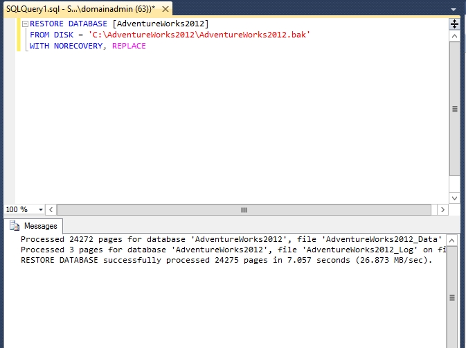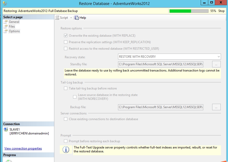 还原过程需要加上WITH NORECOVERY,后面才不会报错。